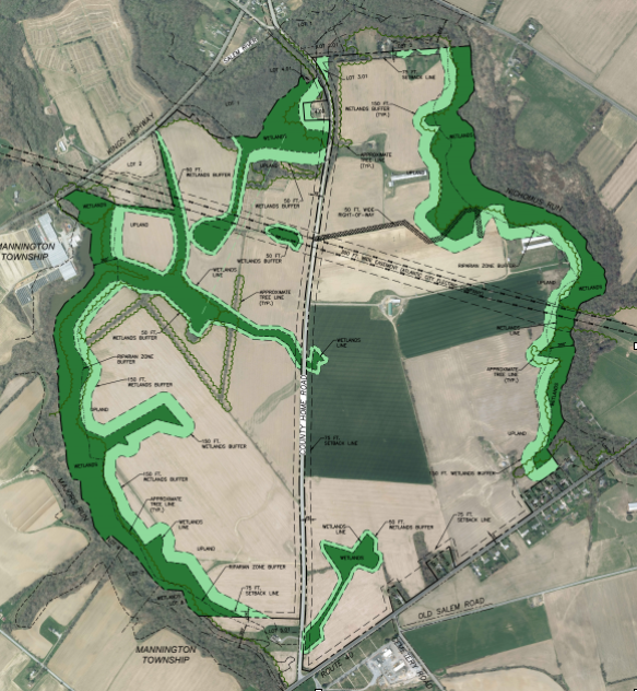 Located in Pilesgrove Township, Salem County NJ, the proposed site for the Nichomas Run Solar Farm runs to the east and west of County Home Road to the northwest of Route 45.
